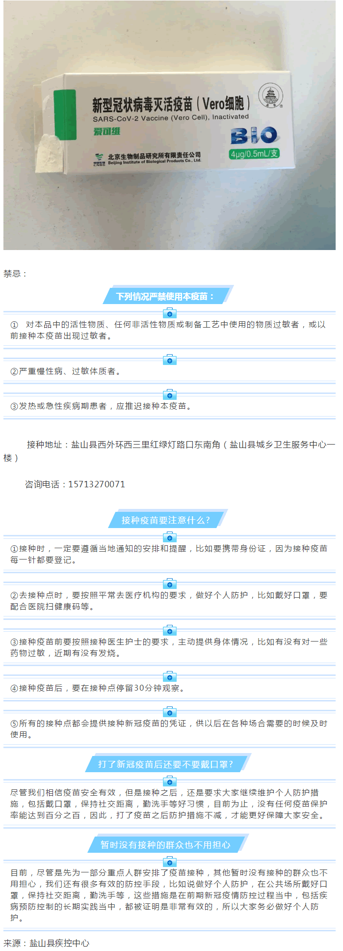 本次接種的疫苗來自北京生物制品研究所有限責(zé)任公司,需接種兩針,間隔14-28天。