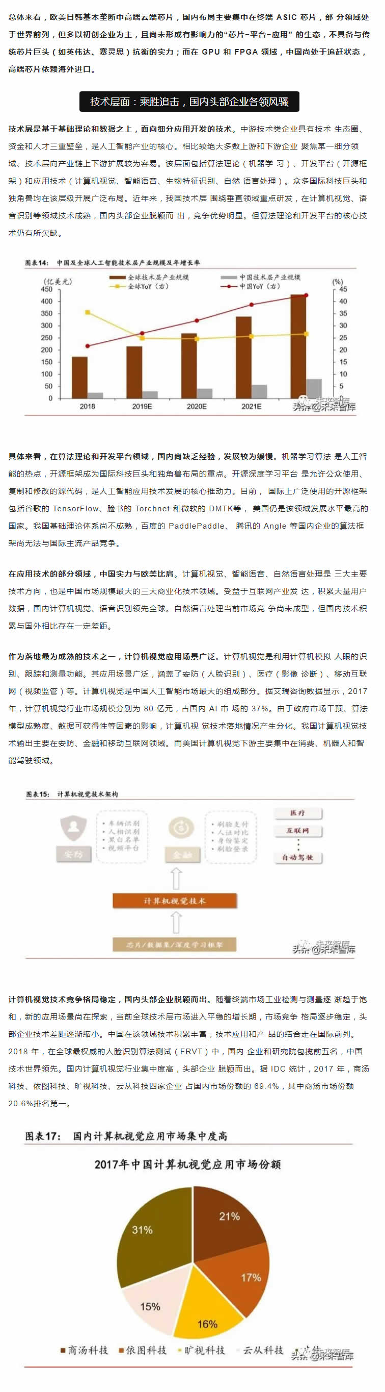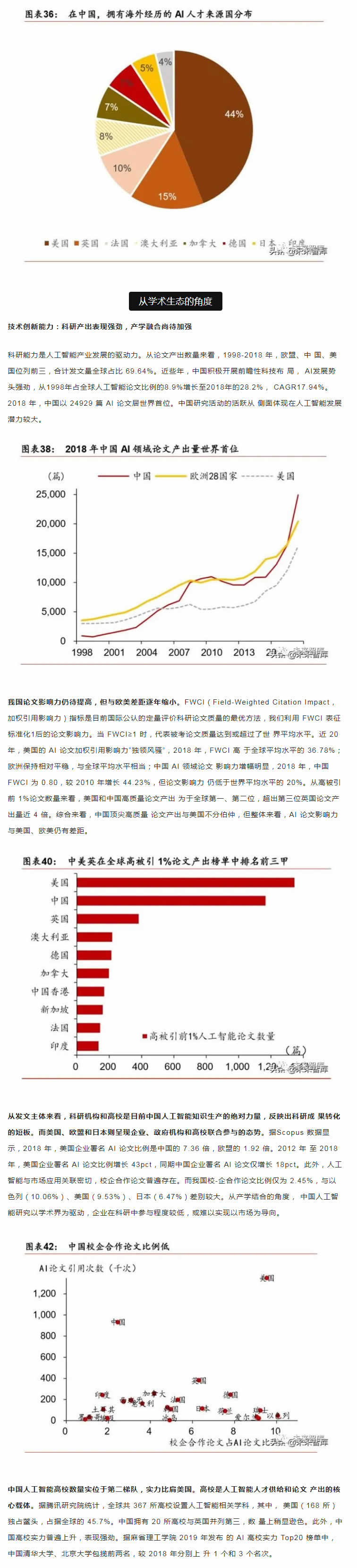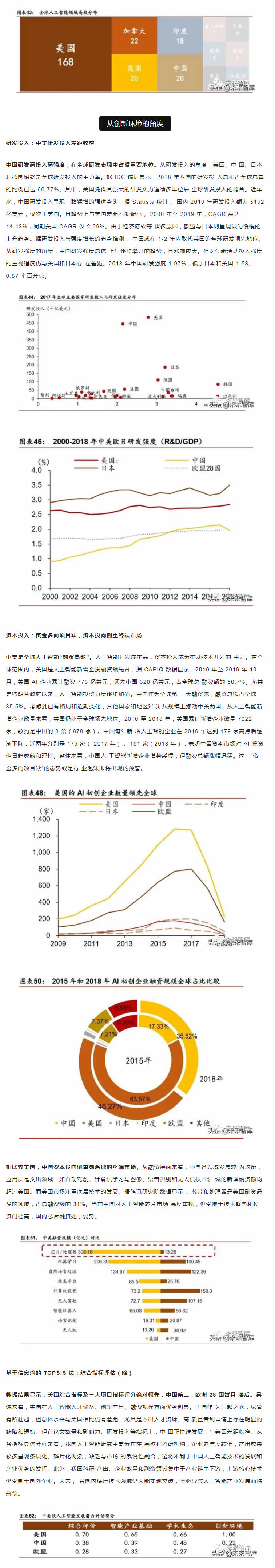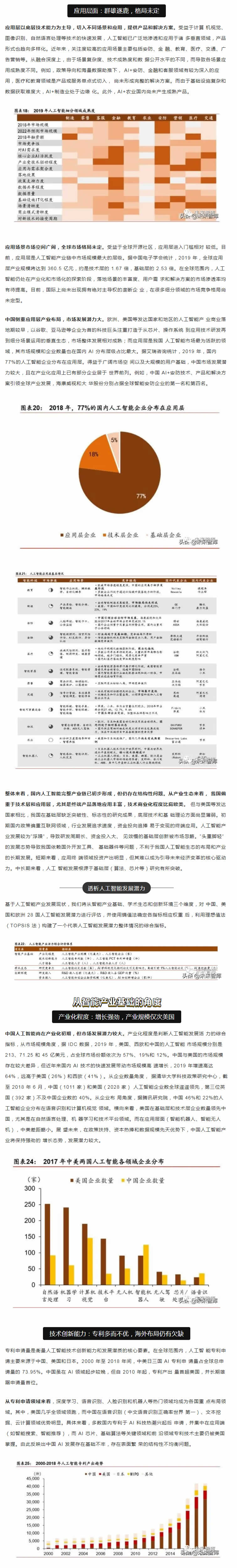 從中短期看,技術(shù)優(yōu)化、落地場(chǎng)景的開拓和滲透是是主要的增長點(diǎn);從長期看,智能生 態(tài)體系建設(shè)才是彎道超車的必由之路。人工智能產(chǎn)業(yè)的核心競(jìng)爭(zhēng)力在于生態(tài)體系的建設(shè), 包括大數(shù)據(jù)、算法理論、底層技術(shù)、應(yīng)用生態(tài)、人才儲(chǔ)備等層面。而我國人工智能產(chǎn)業(yè)生 態(tài)和基礎(chǔ)設(shè)施建設(shè)正處于探索期,如何實(shí)現(xiàn)核心技術(shù)的突破和拓寬人工智能技術(shù)與社會(huì)經(jīng) 濟(jì)融合場(chǎng)景著力點(diǎn)在于人才儲(chǔ)備和持續(xù)的研發(fā)投入。從人才的角度,收窄技術(shù)差距的根本 在于優(yōu)化人的知識(shí)結(jié)構(gòu)和能力。當(dāng)前政策應(yīng)側(cè)重建立人才培養(yǎng)體系,為人工智能打造人才 資源池,尤其是在基礎(chǔ)學(xué)科L域突破人才瓶頸。同時(shí),打破“唯數(shù)量論”的科研評(píng)價(jià)和考 核體系,改變?nèi)瞬偶?lì)機(jī)制勢(shì)在必行。我國人工智能專利申請(qǐng)和科研產(chǎn)出數(shù)量L先, 但質(zhì)量堪憂。唯有從源頭改變?cè)u(píng)價(jià)機(jī)制,才能扭轉(zhuǎn)“量多而質(zhì)優(yōu)”的問題。從研發(fā)的角度, 企業(yè)技術(shù)優(yōu)化和創(chuàng)新能力是解決產(chǎn)業(yè)痛點(diǎn)的關(guān)鍵;A(chǔ)研究的投入周期長、不確定性大、 和風(fēng)險(xiǎn)G特點(diǎn)決定了其難以短期內(nèi)獲得投資回報(bào),但基礎(chǔ)L域的突破將為經(jīng)濟(jì)帶來長期和 廣泛的溢出效應(yīng),因此,國內(nèi)更應(yīng)關(guān)注底層技術(shù)的研發(fā)投入,扭轉(zhuǎn)傳統(tǒng)技術(shù)路徑,顛覆核 心技術(shù)受制于人的被動(dòng)局面。此外,人工智能在賦能機(jī)器模擬人類進(jìn)行決策的同時(shí)產(chǎn)生的 倫理道德、隱私保護(hù)和社會(huì)安全問題值得關(guān)注。由于法律法規(guī)存在滯后性,尚無法對(duì)人工 智能技術(shù)進(jìn)行有效監(jiān)管。我國應(yīng)加快人工智能倫理研究,及早識(shí)別人工智能治理風(fēng)險(xiǎn)。