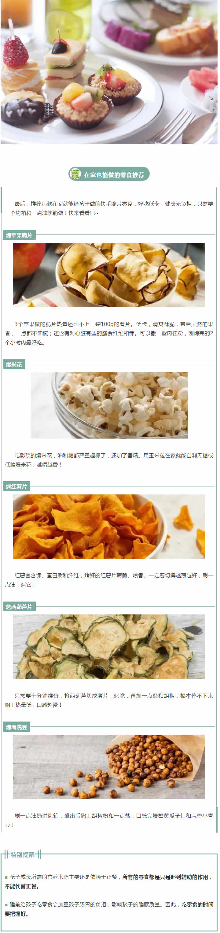 零食應(yīng)新鮮、多樣、易消化、營(yíng)養(yǎng)、衛(wèi)生;