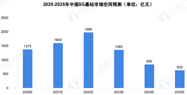 以此價格進(jìn)行計算,預(yù)計2020-2025年中國5G基站市場空間共計將超過7700億元。