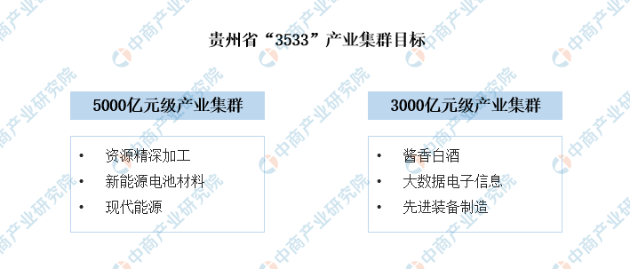 當(dāng)前貴州省錨定“3533”奮斗目標(biāo),加快構(gòu)建富有貴州特色、在國家產(chǎn)業(yè)格局中具有重要地位的現(xiàn)代化產(chǎn)業(yè)體系,到2027年形成資源精深加工、新能源電池材料、現(xiàn)代能源等3個(gè)5000億元級(jí)產(chǎn)業(yè)集群,醬香白酒、大數(shù)據(jù)電子信息、先進(jìn)裝備制造等3個(gè)3000億元級(jí)產(chǎn)業(yè)集群。