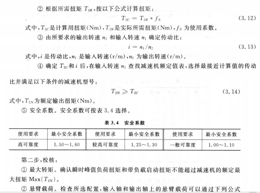 (4)精密行星減速機選型及其問題。選用精密行星減速機應考慮其結(jié)構(gòu)類型、安裝 形式、承載能力、輸出轉(zhuǎn)速、工作條件等因素。減速機的承載能力是在額定轉(zhuǎn)速下,每天 工作10小時和啟動數(shù)少于10time/h 及平穩(wěn)無沖擊的條件下得出的,所以應按以下步驟 進行選型[97]。
