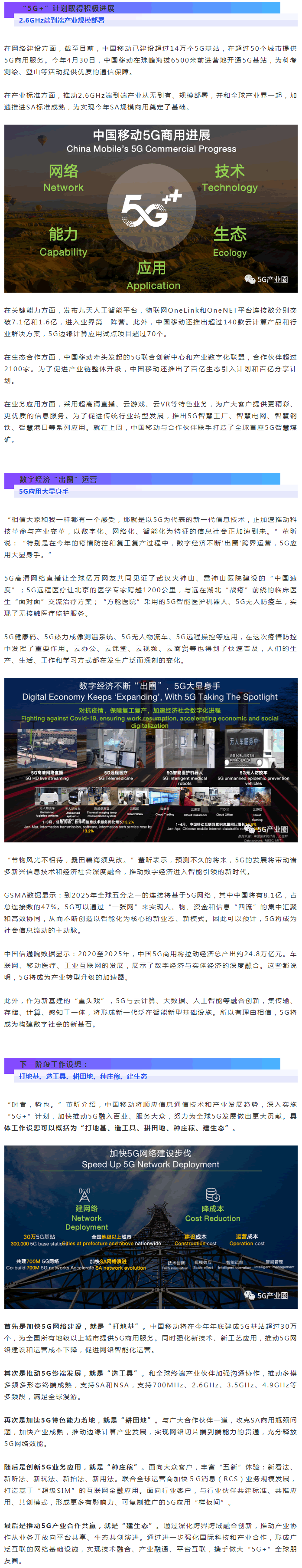 中國移動將通過“打地基、造工具、耕田地、種莊稼、建生態(tài)”,深入實施“5G+”計劃,加快推動5G融入百業(yè)、服務(wù)大眾。