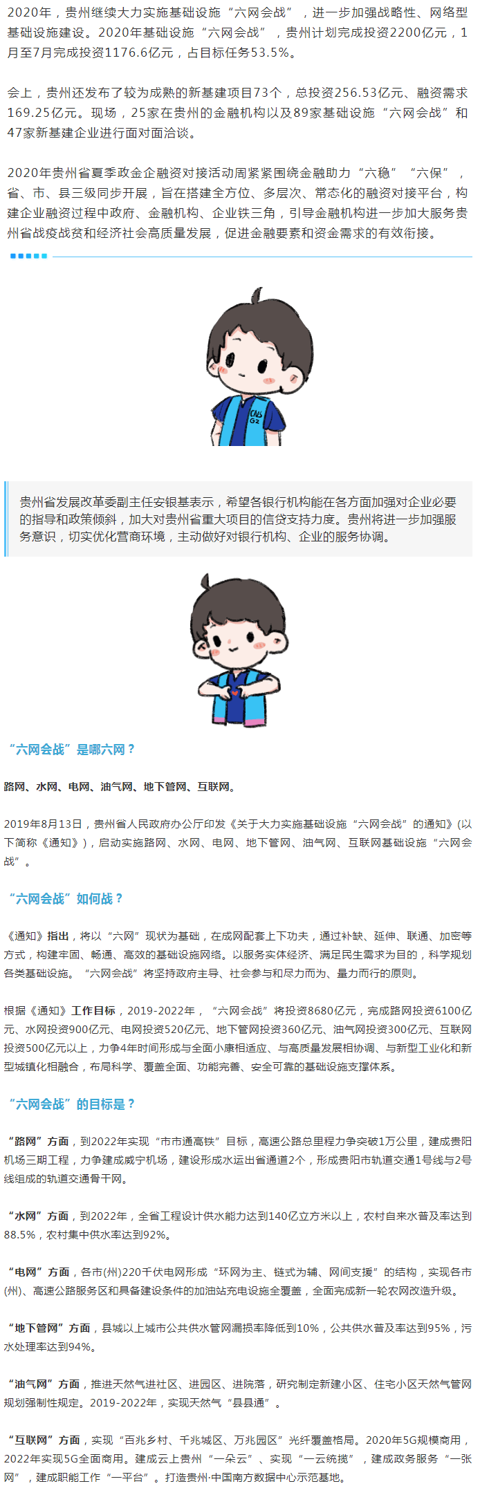 8月6日,2020年貴州省夏季政金企融資對(duì)接活動(dòng)周基礎(chǔ)設(shè)施“六網(wǎng)會(huì)戰(zhàn)”和新基建項(xiàng)目融資洽談會(huì)在貴陽(yáng)舉行。會(huì)上,省發(fā)展改革委向金融機(jī)構(gòu)發(fā)布了“六網(wǎng)會(huì)戰(zhàn)”和新基建項(xiàng)目261個(gè),總投資5477.98億元、融資需求3290.53億元。其中,新基建項(xiàng)目73個(gè),總投資256.53億元、融資需求169.25億元。25家在黔金融機(jī)構(gòu)與89家基礎(chǔ)設(shè)施“六網(wǎng)會(huì)戰(zhàn)”和47家新基建項(xiàng)目建設(shè)單位進(jìn)行了面對(duì)面洽談。