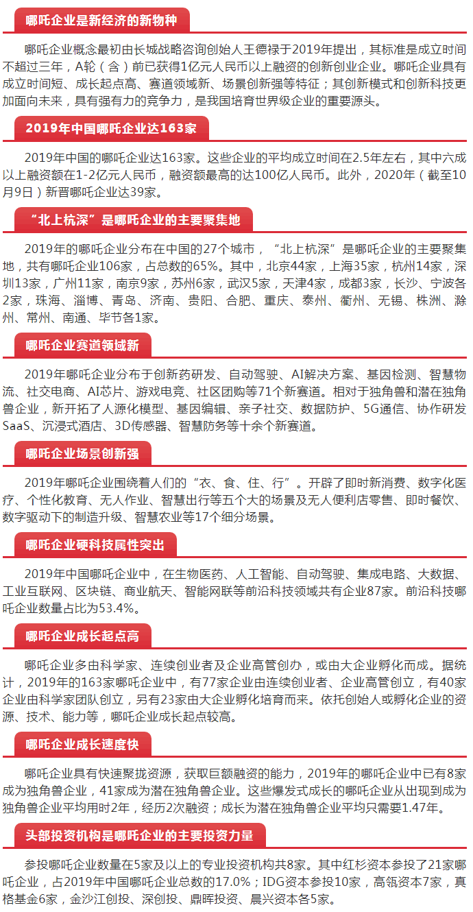 2019年中國的哪吒企業(yè)達163家。這些企業(yè)的平均成立時間在2.5年左右,其中六成以上融資額在1-2億元人民幣,融資額G的達100億人民幣