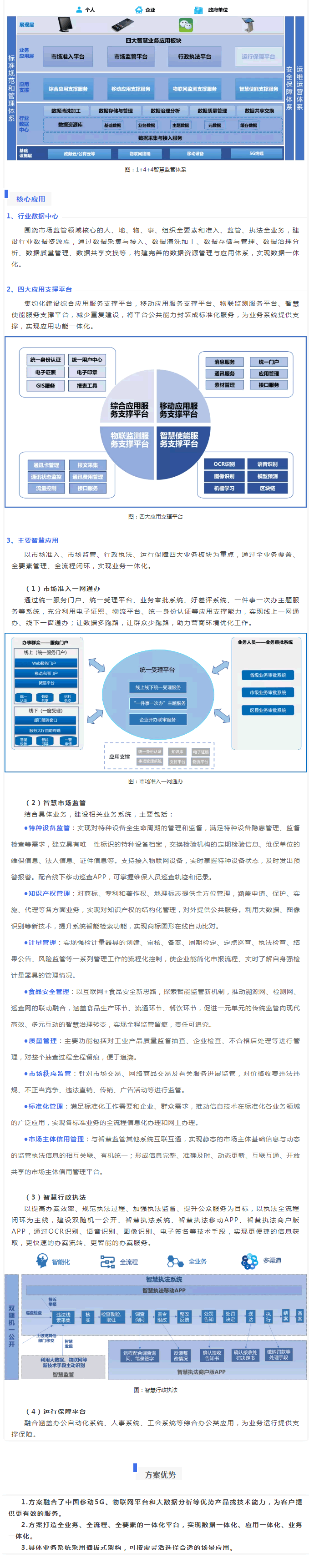 打造1+4+4智慧監(jiān)管體系,即1個(gè)行業(yè)數(shù)據(jù)中心,4大應(yīng)用支撐服務(wù)平臺(tái),4大智慧應(yīng)用板塊,面向個(gè)人、企業(yè)和政府單位三大用戶群體,提供多渠道、全方位、智能化的信息化服務(wù)。
