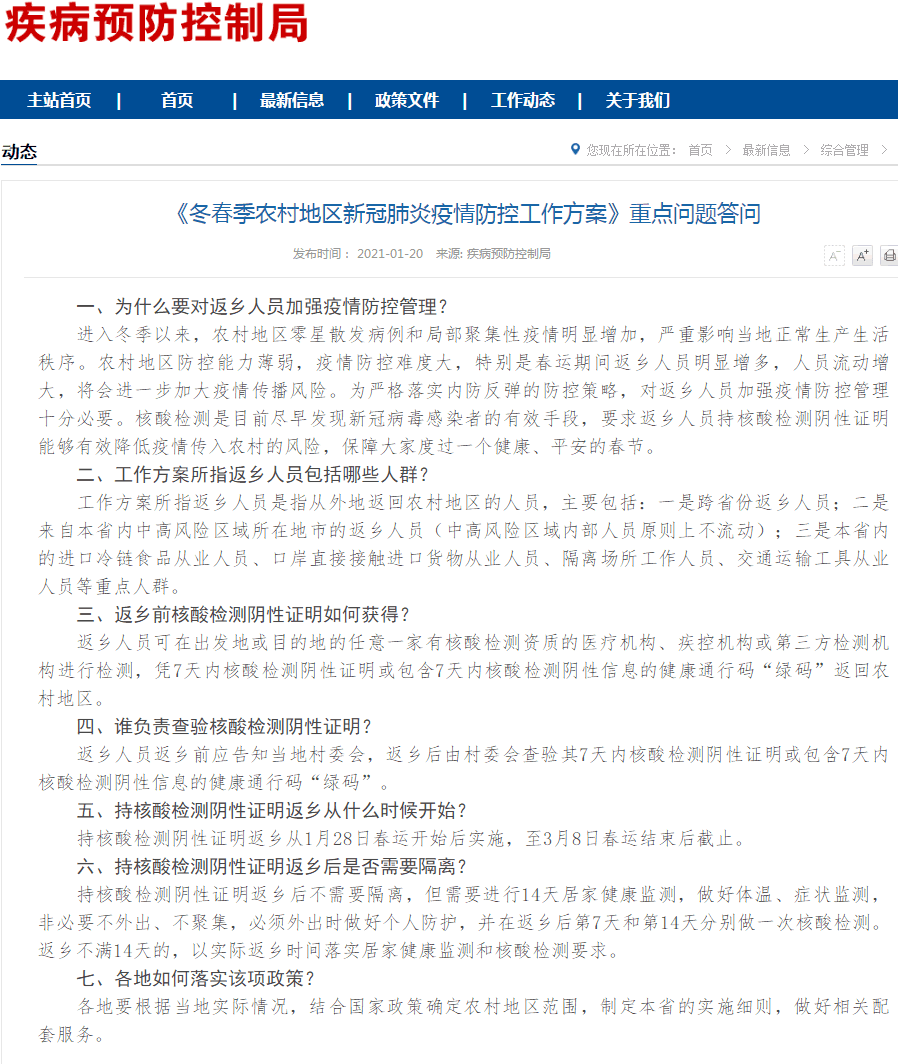 持核酸檢測陰性證明返鄉(xiāng)從1月28日春運(yùn)開始后實(shí)施,至3月8日春運(yùn)結(jié)束后截止。