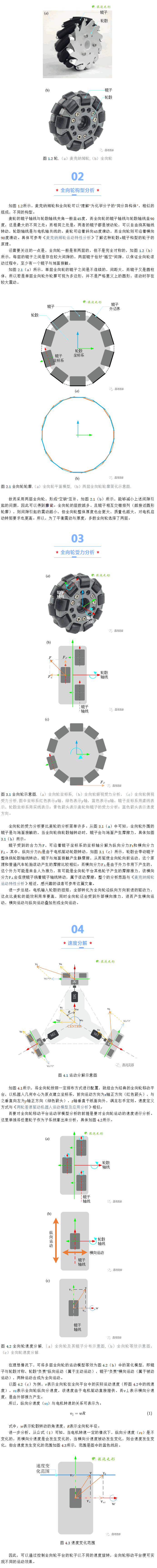 本文先描述了全向輪的構(gòu)型及基本特點,接著對單個全向輪進(jìn)行了受力分析,指出了電機(jī)轉(zhuǎn)矩與全向輪所受分力的關(guān)系,并在此基礎(chǔ)上分析了全向輪縱向分速度與電機(jī)輸出轉(zhuǎn)速之間的關(guān)系,給出速度分解方程;后,總結(jié)分析了全向輪的在實際使用過程中的特點及問題。