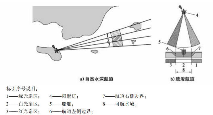 4. 4 當(dāng)用扇形燈標(biāo)示可航水域時,扇區(qū)邊界應(yīng)與可航水域邊界保持一定的安全距離。