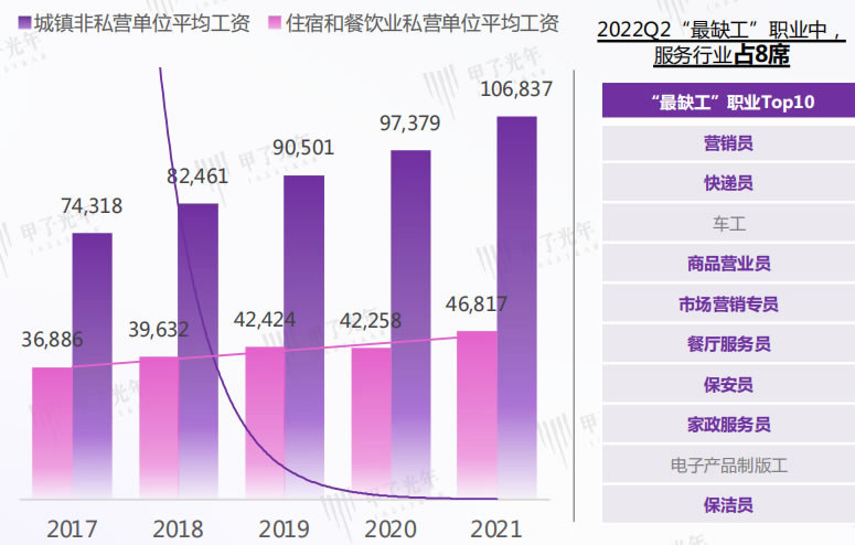 新G疫情大流行,造成勞動(dòng)力整體流動(dòng)性下降,勞動(dòng)人口與崗位錯(cuò)配,同時(shí)受限于整體工資水平低下,服務(wù)業(yè)勞動(dòng)力短缺問(wèn)題愈發(fā)嚴(yán)重;