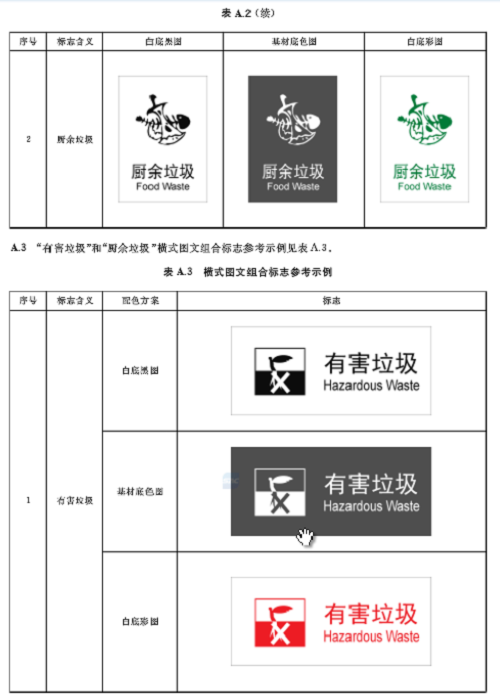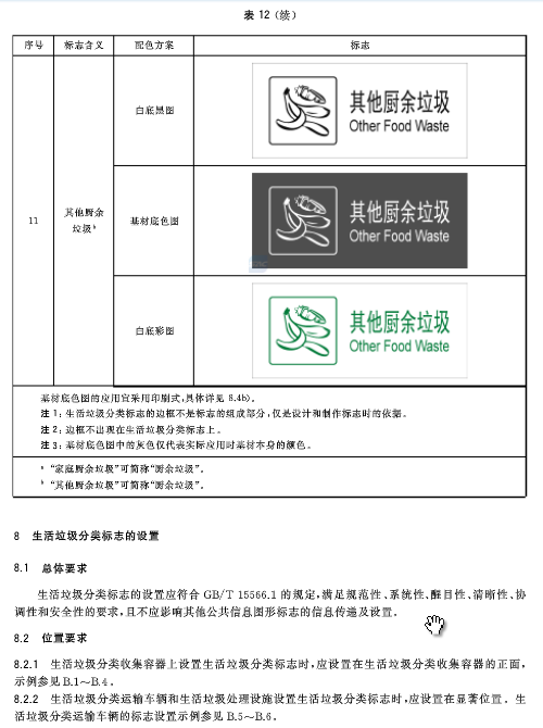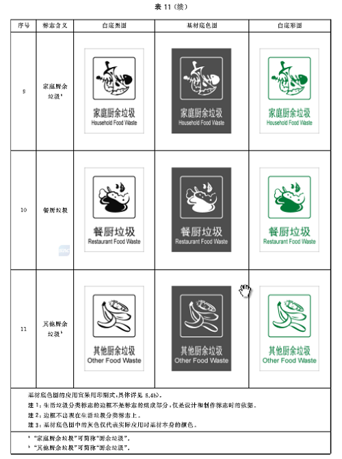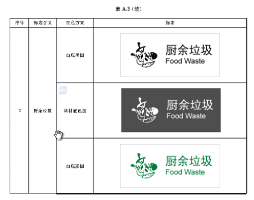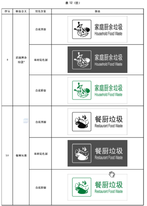 廚余垃圾中小類標(biāo)志用圖形符號